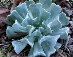 蓝黛莲是一种景天科厚叶草属植物。叶片呈略扁的圆柱形,排列成莲座状;颜色为灰绿色,…
