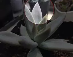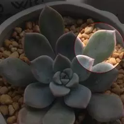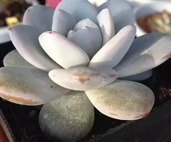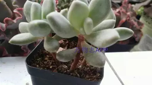 叶片互生,排列成延长的莲花座,叶片呈倒卵型。有叶尖,叶尖红色。出状态后十分漂亮。