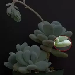 稻田姬(学名:Pachyphytum glutinicaule Moran),为景天科、厚叶草属多年生植物,多肉植物。高可达30厘米,成株具20-35片叶,特征是明显突出的白色叶尖和略带粘性的茎。
