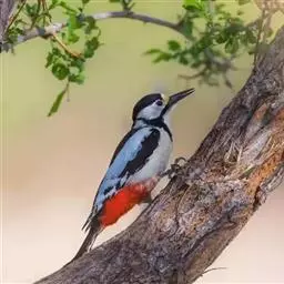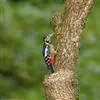 大斑啄木鸟隶属鸟纲鴷形目啄木鸟科。雄鸟头顶黑色,枕部红色,眼先、颊部和耳羽白色,颈部污白色,…