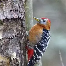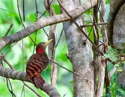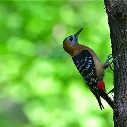 棕腹啄木鸟为啄木鸟科,啄木鸟属是中等体型的鸟类,体长约20厘米。头顶部具红色斑带。脚强健,有趾4个,…