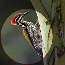 三趾啄木鸟,是啄木鸟科、啄木鸟属的小型鸟类,体长20-23厘米,雄鸟头顶金黄色,雌鸟黑色而具白色斑点。…