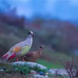 黄腹角雉:是鸟纲、雉科中国特产的一种鸟类。体长约50-65厘米。雄鸟上体栗褐色,…