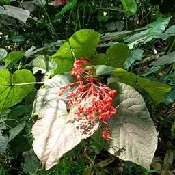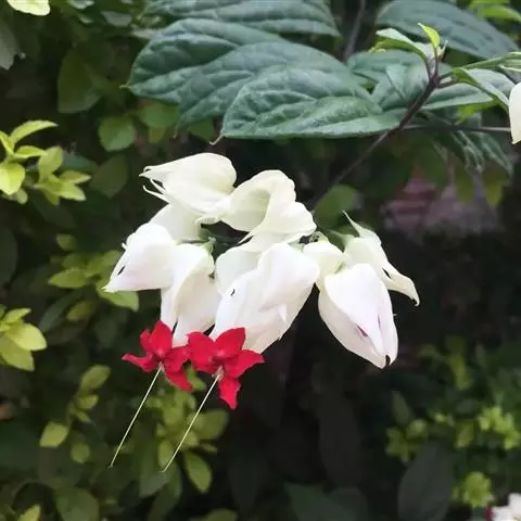 红萼龙吐珠马鞭草科大青属常绿木质藤本。叶对生,纸质,具柄,卵状椭圆形,全缘,先端渐尖,基部近圆形。…