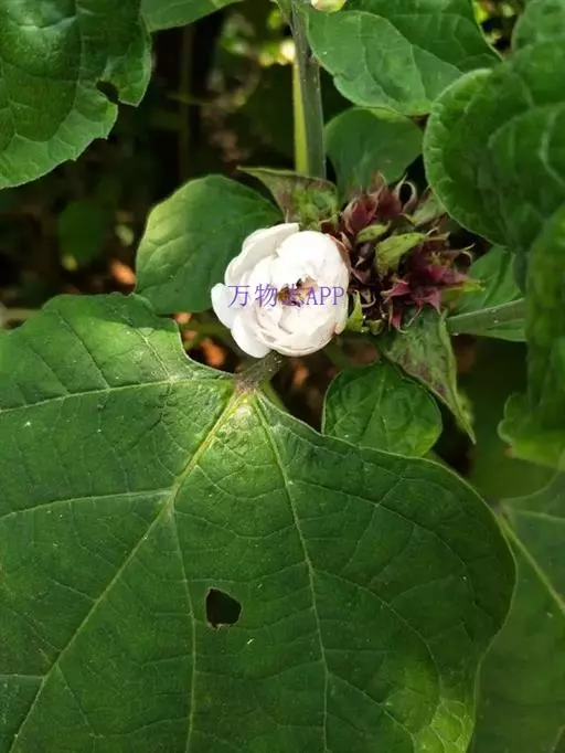 植物体被毛较密,伞房状聚伞花序较密集,花较多,苞片较多,花单瓣,较大,花萼长1.3-2.5厘米,萼裂片披针形,长1-1.6厘米,花冠白色或淡红色,花冠管长2-3厘米,裂片椭圆形,长约1厘米。核果近球形,径8-10毫米,成熟时蓝黑色。宿萼增大包果。花果期5-11月。