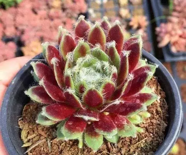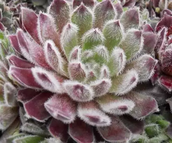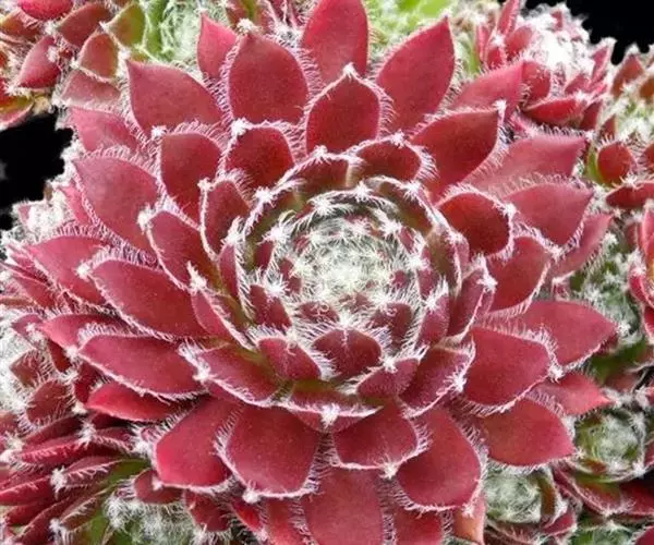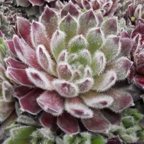 卷绢(学名:Sempervivum arachnoideum L.)是景天科,长生草属多肉植物,植株莲座形,莲座叶盘很小,但易群生呈垫状生长,因此在原产地每株占地面积较大。叶排列紧密,绿色中带红色,叶尖有白毛,在植株顶部联结如蛛网。叶元柄,倒卵形;粉红花,直径2厘米左右。