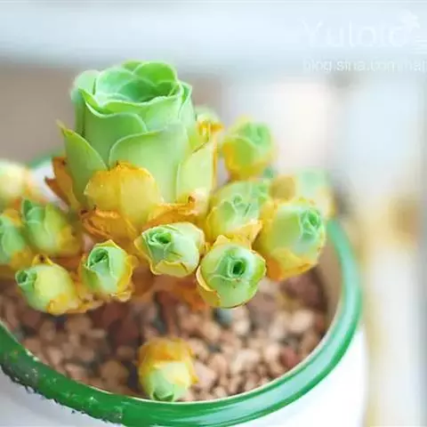 爱染锦,别名黄笠姬锦、墨染,景天科莲花掌属多肉植物,矮小灌木状植株。…