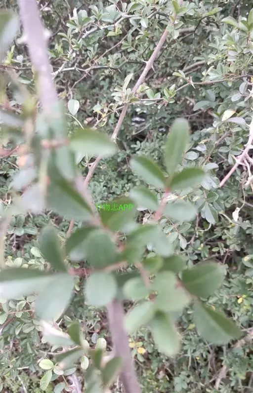 幼枝密被针刺及宽扁大形紫色皮刺,小叶片上面叶脉明显,…