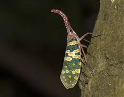 龙眼鸡是同翅目蜡蝉科蜡蝉属昆虫,又名龙眼蜡蝉、黄虫,长鼻子。体色艳丽;头额延伸如长鼻,额突背面红褐色,…