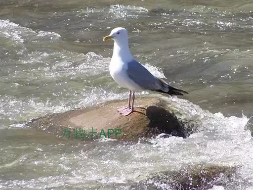 灰背鸥大型水鸟,体长62~69厘米。嘴直,黄色,下嘴先端有红色斑。脚粉红色,头、颈和下体白色,背、…
