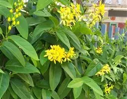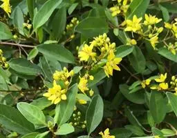 金英常绿灌木,株高约50-160厘米,嫩茎红色。叶片绿色,对生,椭圆形,先端尖,基部楔形,全缘。…