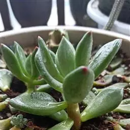 青星美人是景天科厚叶草属的多肉植物。开花时抽生出长长的花梗,簇状花序,红色花朵依次开放,呈倒钟形,…