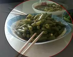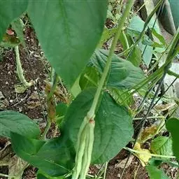 荚果长约10厘米,具梗,先端有喙,在种子间收缢;种子多颗,深红色,有一黑斑。花期6-11月。