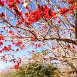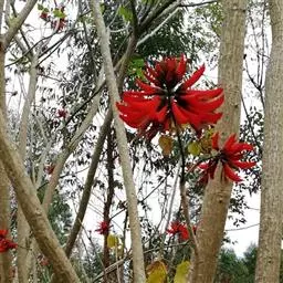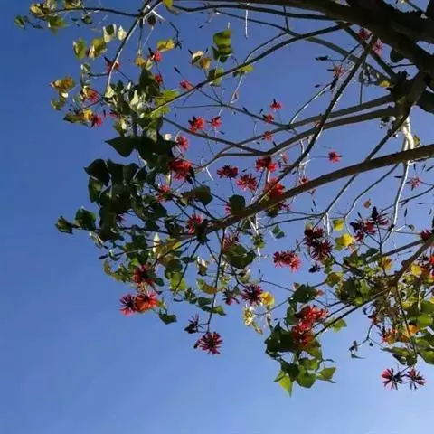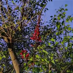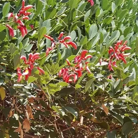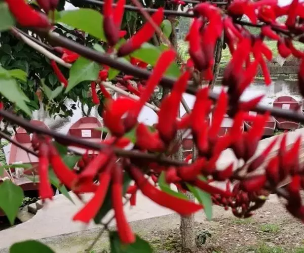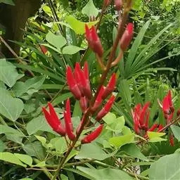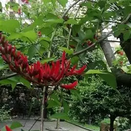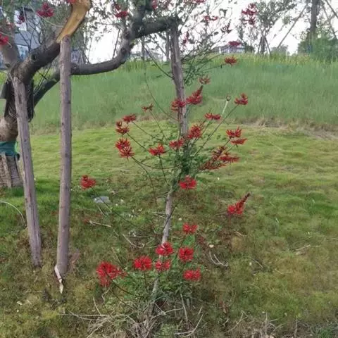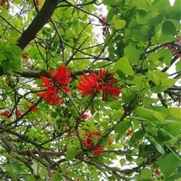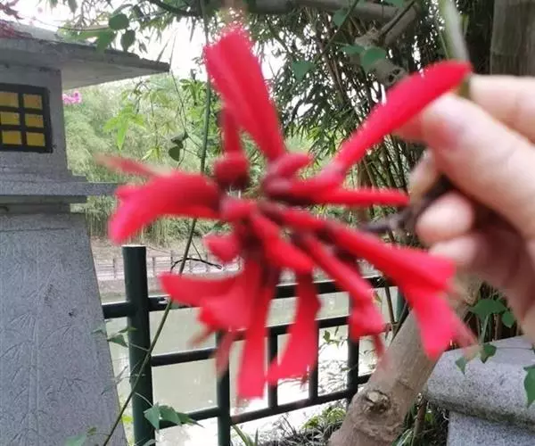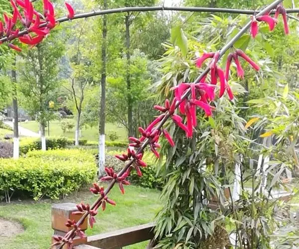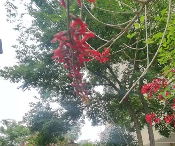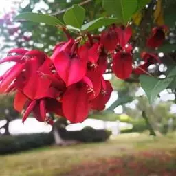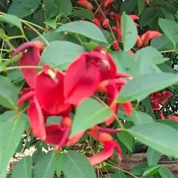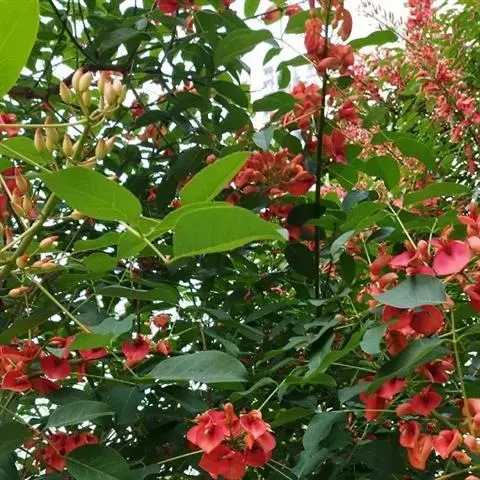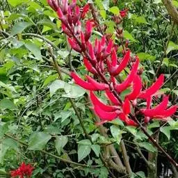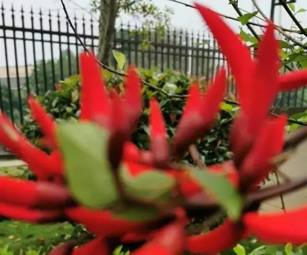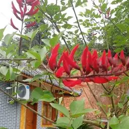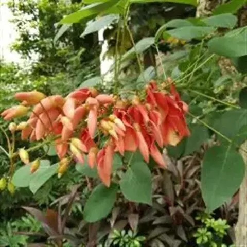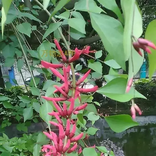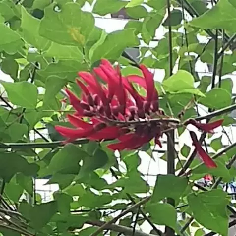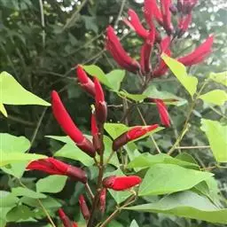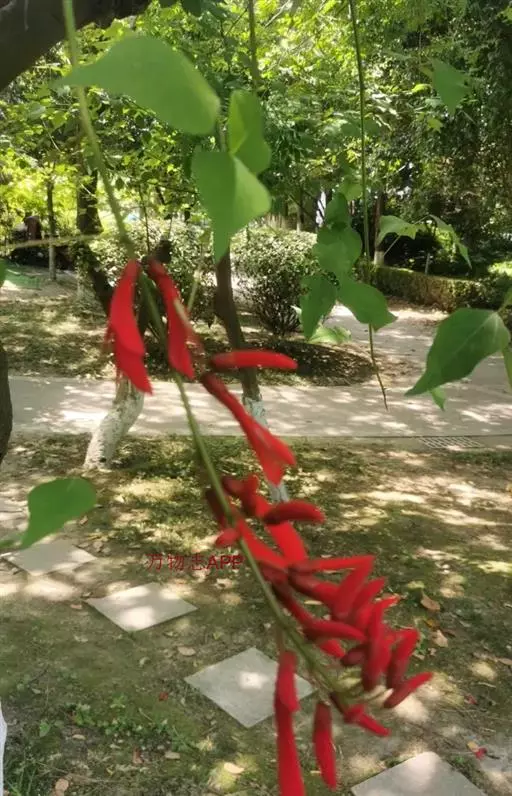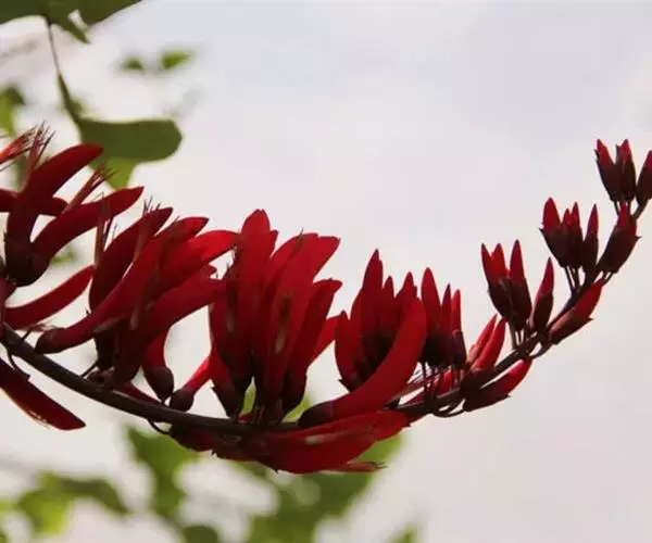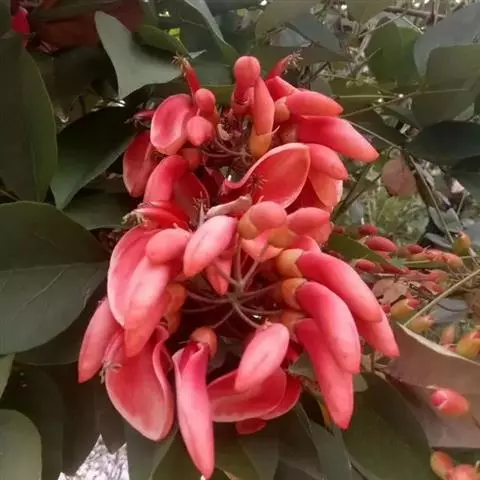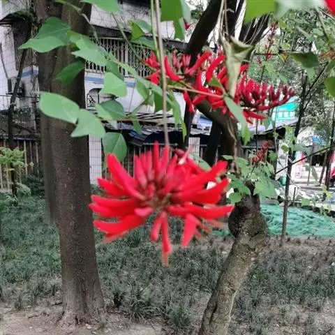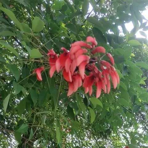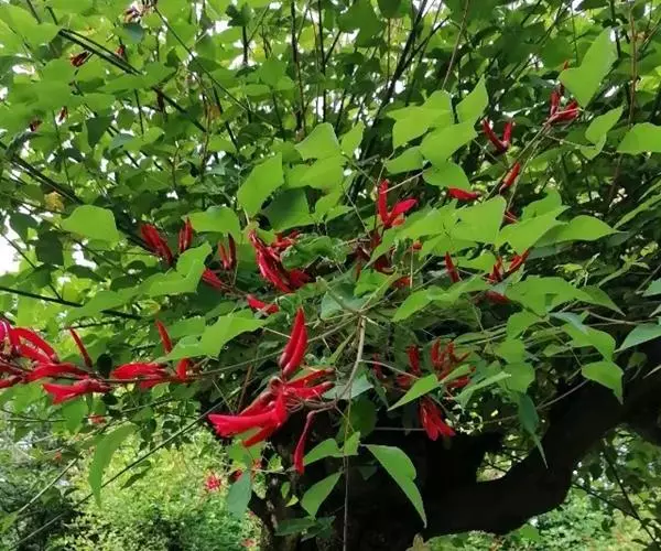 龙牙花红叶扶疏,初夏开花,深红色的总状花序好似一串红色月牙,艳丽夺目,适用于公园和庭院栽植,若盆栽可用来点缀室内环境。是阿根廷国花。(概述图片参考资料来源: )