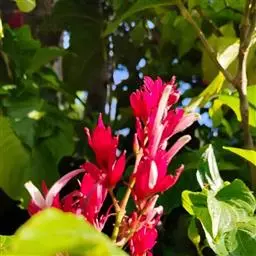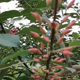 象牙红为一美丽的观赏植物。叶扶疏,初夏开花,深红色的总状花序好似一串红色月牙,艳丽夺目,适用于公园和庭院栽植,若盆栽可用来点缀室内环境。