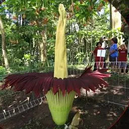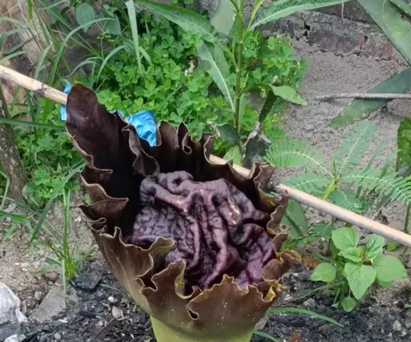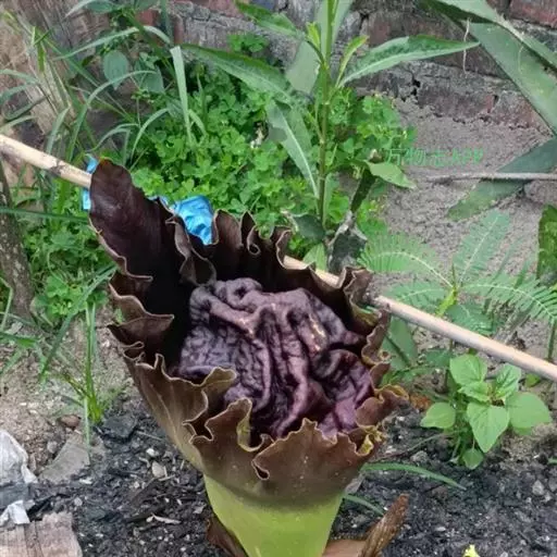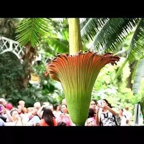 世界著名臭花——疣柄魔芋在武汉植物园开花