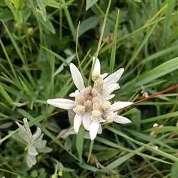 峨眉火绒草(学名:Leontopodium omeiense Ling)是菊科火绒草属植物。根出条细长,稍木质,平卧或斜升,有枯萎宿存的叶和顶生的叶丛,在叶丛上生长花茎。花茎常直立,长5—18厘米,不分枝,被白色棉状密茸毛,全部有叶,节间长1—2.5厘米。基部叶密集成莲座状,顶端圆形,在花期生存。