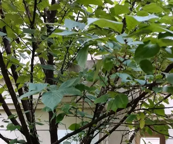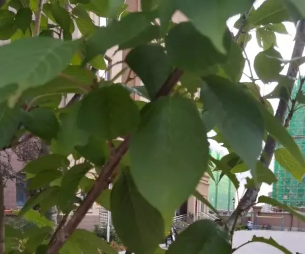 落叶乔木,高达25米,胸径1米,枝广展形成宽阔的树冠;树皮深灰色,粗糙开裂;小枝稍粗壮,灰褐色;冬芽及花梗密被淡灰黄色长绢毛。叶纸质,倒卵形、宽倒卵形或、倒卵状椭圆形,基部徒长枝叶椭圆形,长10-15(18)厘米,宽6-10 (12)厘米,先端宽圆、平截或稍凹,具短突尖,中部以下渐狭成楔形,叶上深绿色,嫩时被柔毛,后仅中脉及侧脉留有柔毛,下面淡绿色,沿脉上被柔毛,侧脉每边8-10条,网脉明显;叶柄长1-2.5厘米,被柔毛,上面具狭纵沟;托叶痕为叶柄长的1/4-1/3。