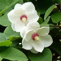 ‘廷栋’玉兰(Magnolia ‘TingDong’)。绿星玉兰(Magnolia ‘LüXing’)和玉灯玉兰的杂交品种。落叶小乔木,株型紧凑。花白色,基部红色。花被片20-26,花杯状,盛开时花被片开张,上半部边缘多少外卷,径11-12厘米。花期3月下旬-4月上旬。果少见。