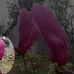‘红颜妒’玉兰(Magnolia ‘HongyanDu’)。红元宝玉兰(Magnolia soulangiana ‘HongYuanbao’)和玉灯玉兰的杂交品种。落叶小乔木,株型紧凑。花背面深红色,内里浅红色。花被片9-11片,外轮略小,有时大萼片状。花杯状,花被片直立,盛开时花被片外张,但不完全平展,有时略皱,花径15-18厘米。花期3月中下旬。果未见。