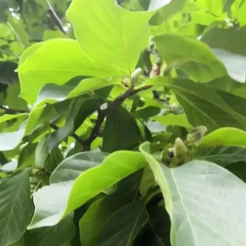 ‘香蕉’玉兰(Magnolia denudata ‘Xiangjiao’)。落叶小乔木,株型紧凑。花白色,花蕾初开时弯曲如香蕉状。花被片9枚,内外几同形。花期3月。果期9月。