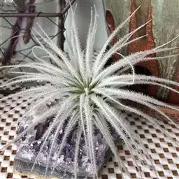 松萝铁兰是直接生长于空气之中,而无须任何土壤等培养基质的气生类植物,在长期的进化过程中,松萝铁兰不像绝大多数植物靠根吸收营养物质,而是依靠它们自身叶面上独特的“保卫细胞”——白色鳞片吸收养分和水。它们的根已经退化成木质纤维,只能起固定作用,失去了一般植物“根”的功能,所以松萝凤梨的根系可以完全暴露在外而不受影响生长,有时甚至看不到它的根,很有流浪的味道,这也构成了它最出众的观赏特色。另外,日常养护十分方便、简单,间隔数日向其喷水及保持适当的空气湿度即可。即可生长于户外,亦可以悬挂于办公室等室内环境下。由于其出众的观赏特点,而日益受到办公室白领、阳台居家花卉养植爱好者的热烈追捧。