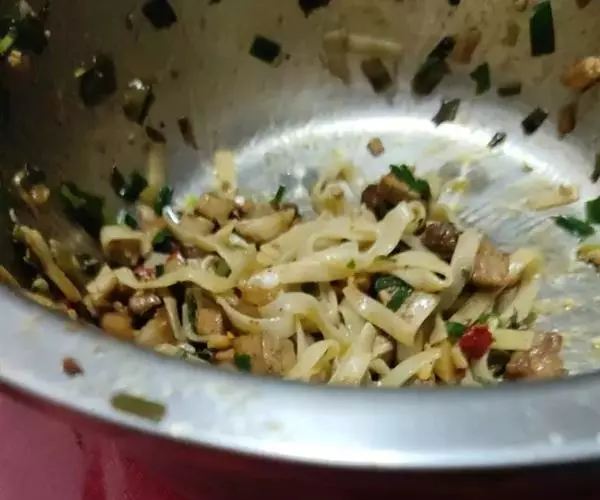 9、加入准备好的其他材料翻炒均匀。