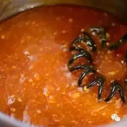 7、超市购买一代火锅底料,待吃完虾后投入锅中涮菜口味更浓!然后根据口味加入适量鸡精味精和骨头汤!