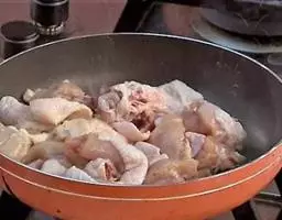 6、锅中留2汤 匙的油(30ml),烧至7成热,放入大蒜片、干辣椒段、姜片炒香。