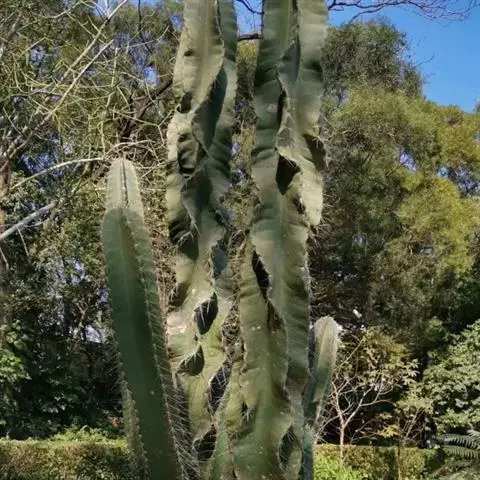 小乔木,高2~6米,直径10~25厘米,老时呈灰色或淡灰色,幼时绿色,上部平展或分枝;小枝肉质光棍…