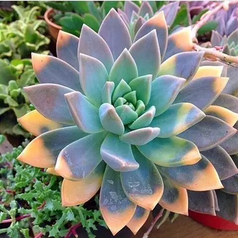 久米之舞,景天科拟石莲花属多年生无毛肉质草本植物。拉丁学名Echeveria spectabili…
