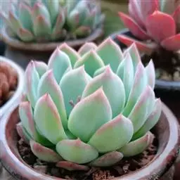 女雏是景天科石莲花属的多肉植物。特征是小巧的株形和橙粉色叶缘。极易生侧芽,…
