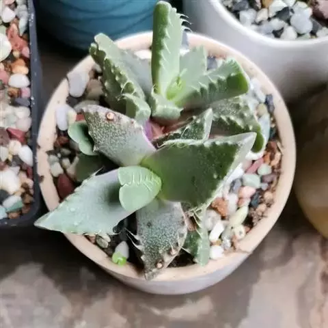 白花小松是景天科塔莲属的多肉植物,杂交种。株型小巧,…