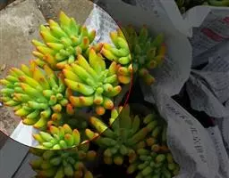 玉缀,别名翡翠景天景天科景天属常绿或半常绿多肉植物,植物匍匐下垂,翠绿色。叶小,多汁,纺锤形,…