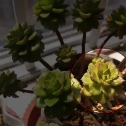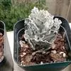 荒玉为番杏科生石花属,原产南非。株体呈白粉色,表面布满凹凸纹路,凹陷处为红褐色,每年秋季开黄花。