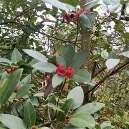 红花荷:金缕梅科红花荷属常绿乔木,高可达12米,嫩枝颇粗壮,叶厚革质,卵形,光滑无毛,有三出脉,叶…
