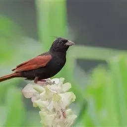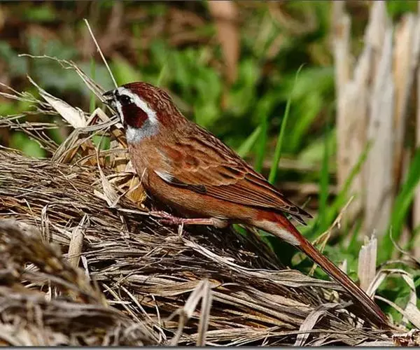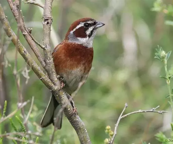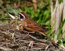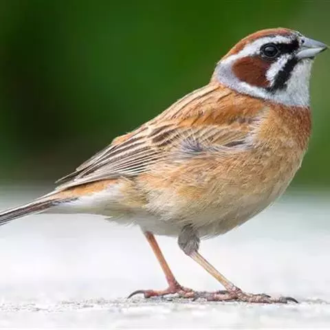 栗斑腹鹀:属小型鸣禽。体重19-25克,体长145-167毫米。头顶至背栗红色,眼先和颧纹黑褐色,…