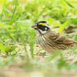 黄眉鹀是雀形目鹀科鹀属鸟类,体型中等偏小。雄鸟头部主要为黑色,冠纹白色,眉纹前段黄色而后段白色,…