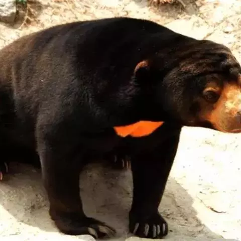 马来熊,是食肉目熊科马来熊属哺乳动物。体胖颈短,眼睛和耳朵小;头部短圆;全身乌黑光滑;鼻唇周为棕黄色,…