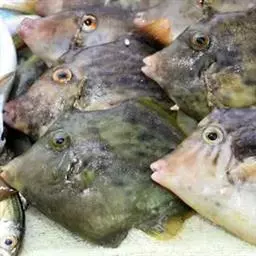 绿鳍马面鲀,硬骨鱼纲,单角鲀科。,俗名橡皮鱼、剥皮鱼、猪鱼、皮匠鱼。分布于朝鲜、日本、印度洋非洲东…