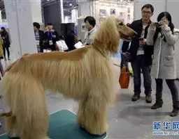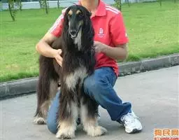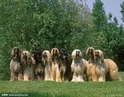 阿富汗猎犬全身披丝绢状的长毛,毛色鲜艳,呈多种颜色,背中线附近毛短,…