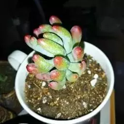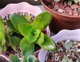 红缘莲花掌属蔷薇目、景天科植物,原产大西洋的加那利群岛。质厚,蓝绿色,被白霜,叶缘红褐色。聚伞花序,…