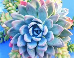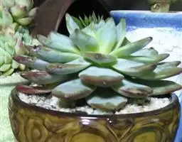吉娃莲,景天科拟石莲花属,别名:吉娃娃,吉娃莲,植株小型,无茎的莲座叶盘非常紧凑。卵形叶较厚,带小尖,…