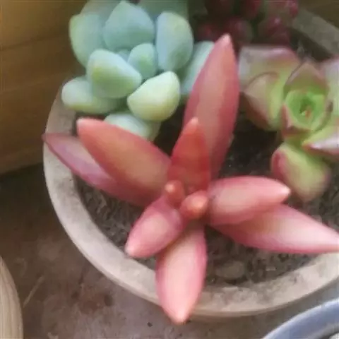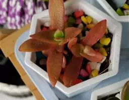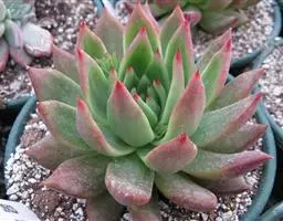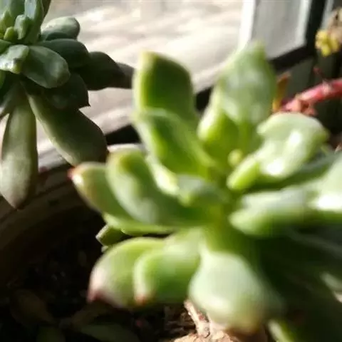 小红衣是景天科、拟石莲花属的一种多肉植物。叶片匙形,扁平细长,叶表具白粉,有明显的半透明边缘,…