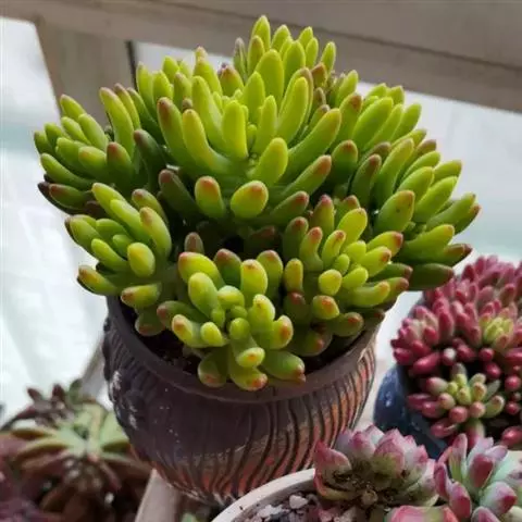 绿龟卵属于景天科景天属,原产墨西哥高原,喜欢亮光,冬春开花,喜欢适度的潮湿不过不能过湿。