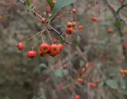火棘 H. L. Li)是蔷薇科火棘属常绿灌木,老枝呈暗褐色;叶片呈倒卵形,边缘有钝锯齿,齿尖向内弯,…
