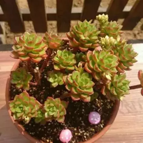 花乃井是景天科拟石莲花属的多肉植物,原产于墨西哥。株型小巧,叶片饱满,在阳光充足、温差大的环境下叶…