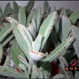 褐斑伽蓝是景天科、伽蓝菜属多年生肉质草本植物或小灌木。全株灰白色,密布白色茸毛。叶片长卵形,…