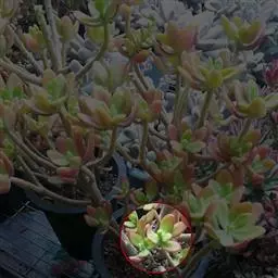 铭月是景天科景天属的多年生亚灌木。多分枝,茎蔓生或直立,高约10-30厘米。…