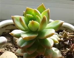 女雏是景天科石莲花属的多肉植物。特征是小巧的株形和橙粉色叶缘。极易生侧芽,…